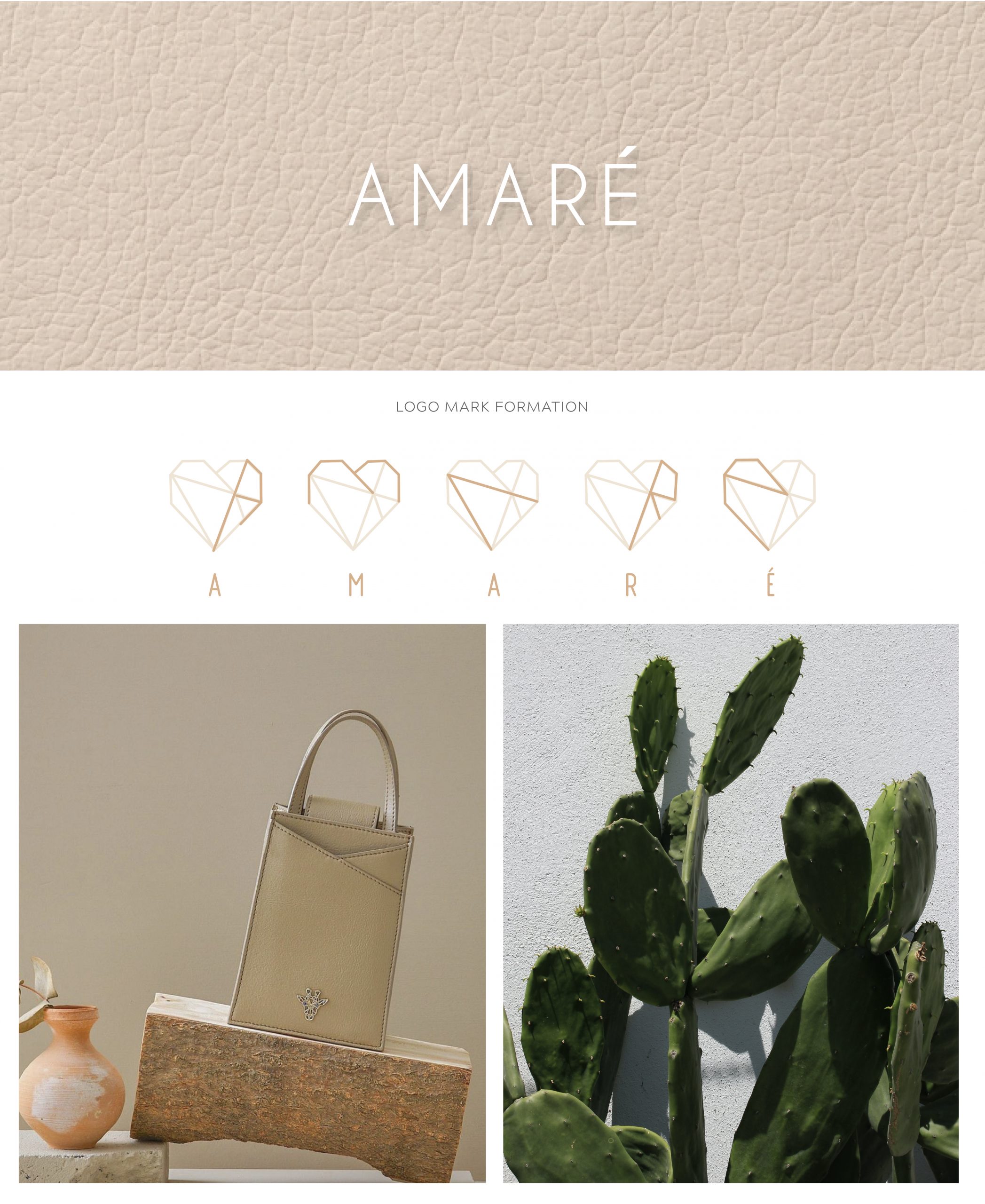 Aum, the founder of Amaré is a strong advocate of cruelty against animal, especially in the fashion world. She created a line of leather handbags made from plant-based leather. Her approach to the brand was to have earthy and neutral colours to compliment the design of the bags. Her logo is a Workmark with a combination of an emblem used alternatively. The emblem of the heart reads the words Amaré